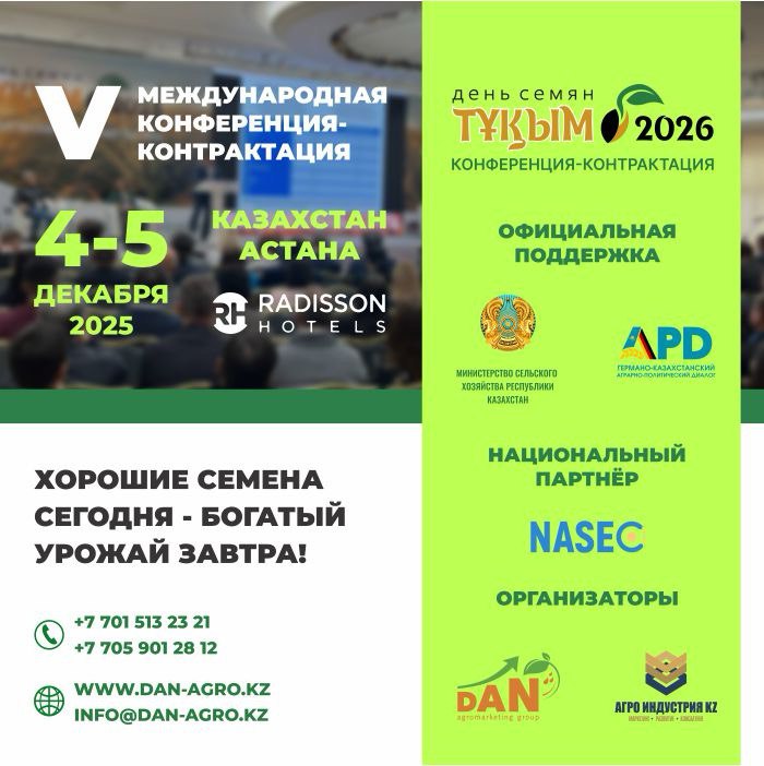 4-5 декабря 2025 года в Казахстане, г. Астана, пр-т Сары-Арка, 4, отель «Рэдиссон», состоится 5-ая Международная Конференция-Контрактация «ДЕНЬ СЕМЯН «ТҰҚЫМ-2026».
