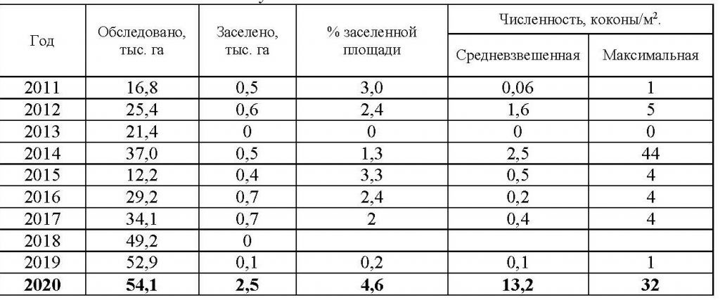 В 2021 году увеличение численности не ожидается, но при благоприятных погодных условиях зимнего и весеннего периода возможно очажное увеличение численности вредителя или залет из сопредельных территорий в степные районы области.