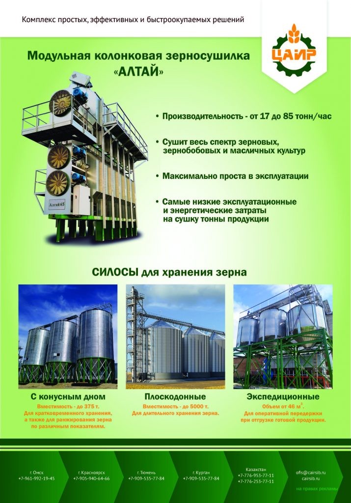 Также работаем над технологиями сушки и хранения зерна – произведено около 400 зерносушилок алтайского производства 17-85 тн/ч («Комплекс Агро»), которые снижают себестоимость сушки зерна в 2,5-3 раза на сжиженном газе, а на природном – еще в 2,5 раза. Произведены и реализованы первые образцы алтайских зернохранилищ.