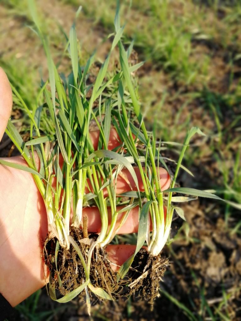После протравки семян «биологией» на полях работают только весной. Литвинов не использует биодеструкторы соломы сразу после уборки или осенью – отсутствие влаги не позволяет. Препараты для разложения растительных остатков он предпочитает добавлять в состав БЗСК, которым работает уже по вегетации растений. И утверждает, что эффект от такого агроприема виден и на следующий год. Когда почва здорова, в ней идет накопление и воспроизводство полезных организмов.